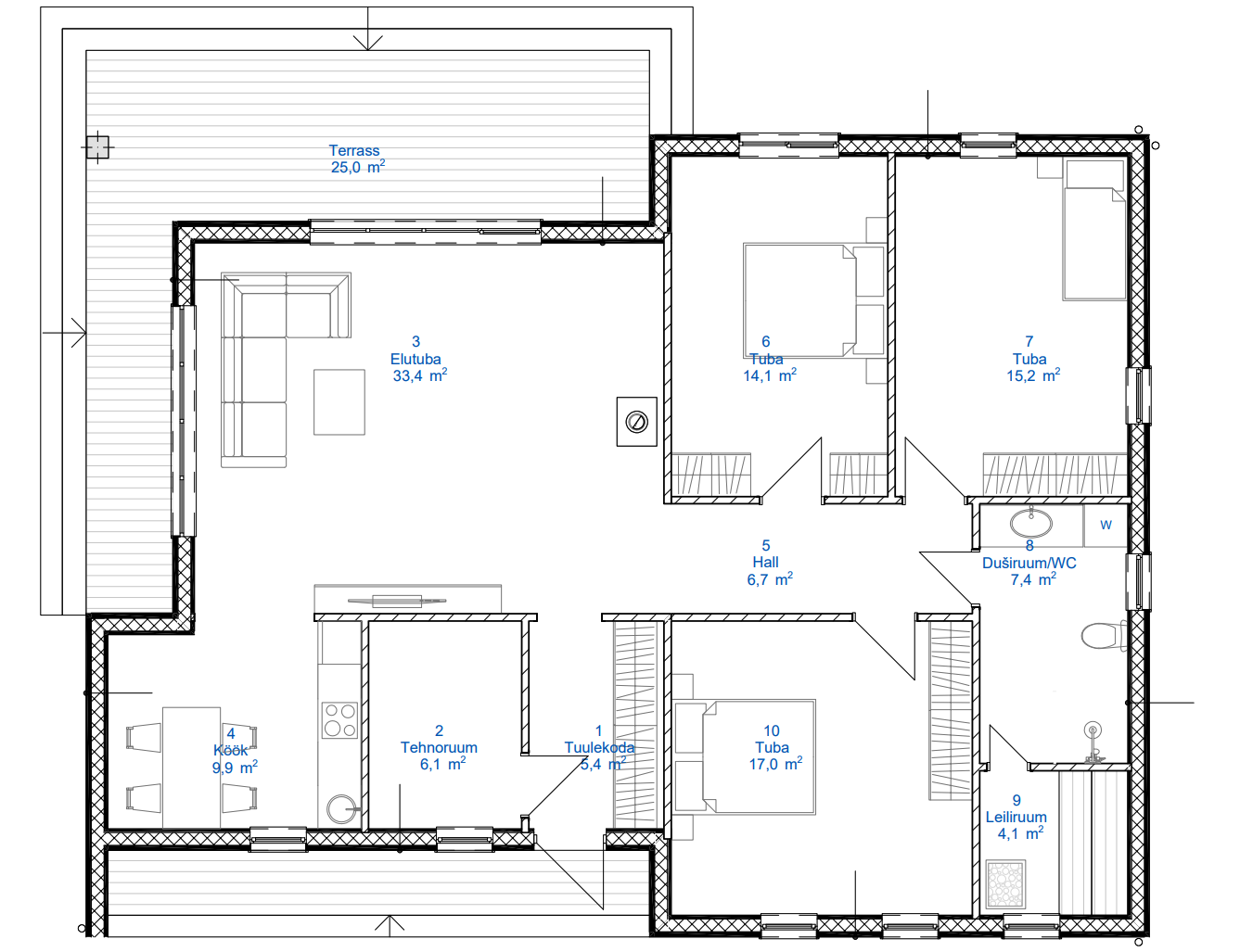 | Fassaad | Laudis või värvitud betoon |